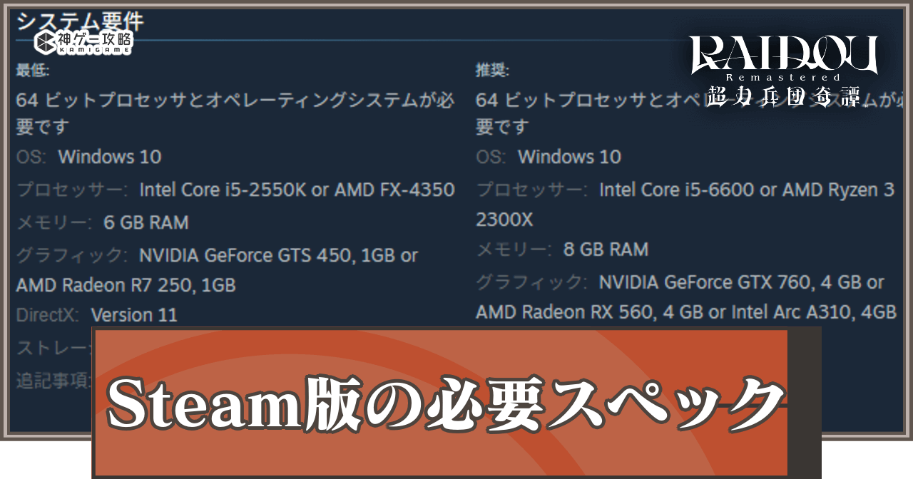 ライドウリマスターの「Steam版(PC版)の必要スペック」を解説。ライドウのSteam版の最低スペックと推奨スペックについても掲載しています。