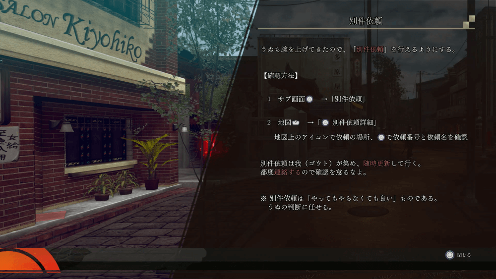 異界・筑土町をクリアして、リンへの聞き込みを完了すると、別件依頼が解放される。別件依頼は、ストーリーとは別軸で進行するサブクエスト的要素で、クリアすれば豪華な報酬を獲得可能だ。