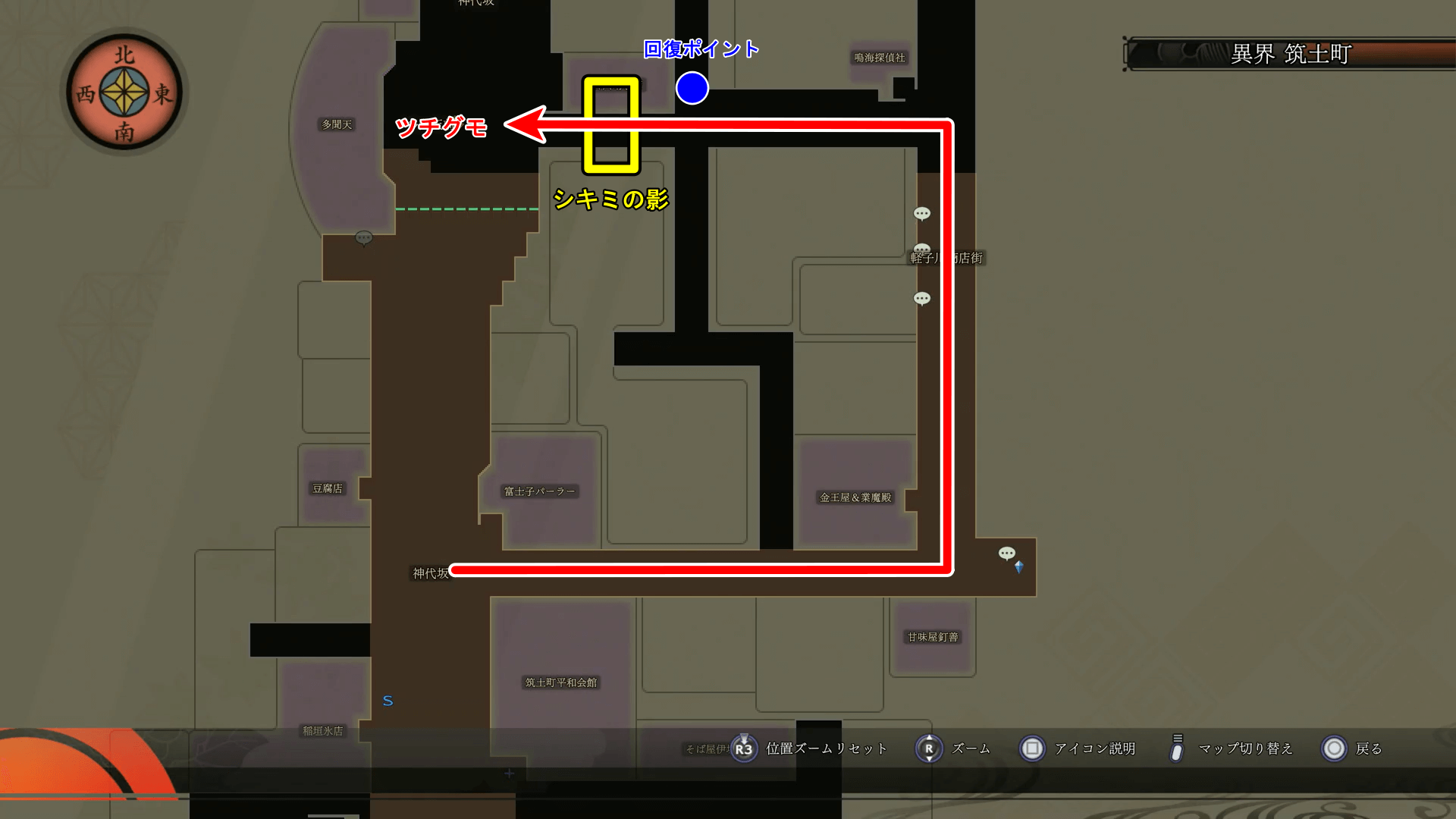異界・筑土町では、真っ直ぐツチグモに近づこうとしても「龍のアギト」で進めないため、東側から迂回しよう。道中の敵は隠密祓いで積極的に戦闘を行い、仲魔にしていくと良い。
