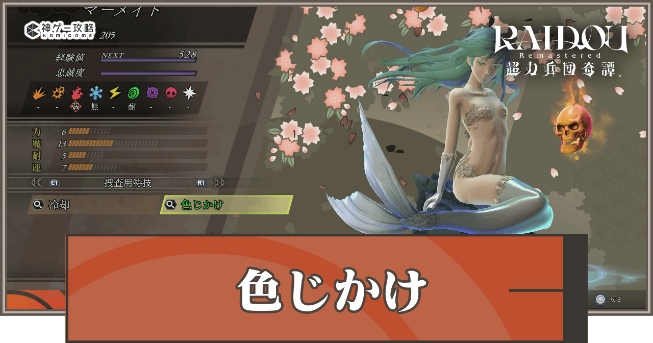 ライドウリマスターの「色じかけの仲魔一覧」を解説。ライドウの色じかけが使える悪魔の出現場所や合成例を一覧で掲載しています。
