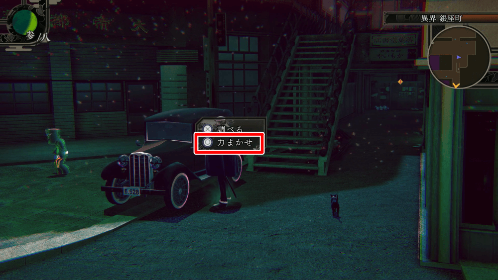 異界銀座町では、ギミックを解くのに特技「力まかせ」を持つ仲魔が必要だ。力まかせは、ネコショウグンやトゥルダクなどの蛮力族が所持している。
