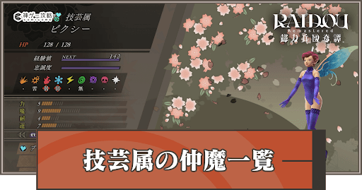 技芸属の仲魔一覧