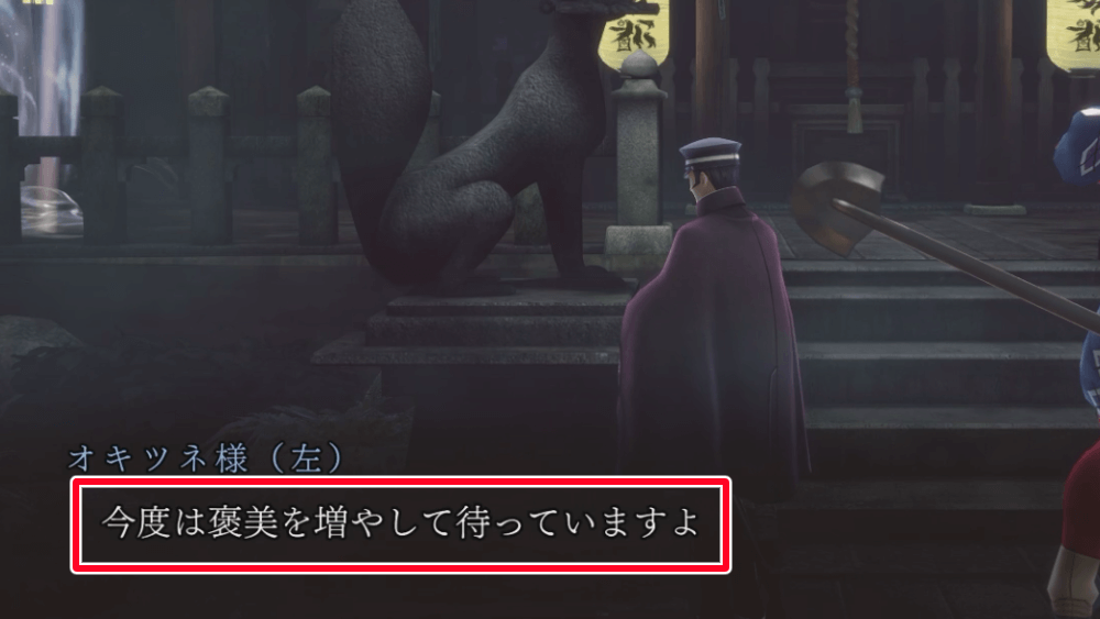 ザクロは、5か所祓う度にオキツネ様から報酬が貰える。報酬が貰えるようになった段階で、条件達成のテキストも出る。報酬が貰えるようになったら、名も無き神社を訪れて報酬を受け取ろう。