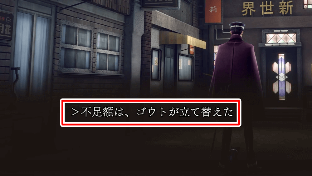 なお、立て替えてもらった代金は、お金が貯まった際に取り立てられる。所持金の無い状態でむやみに移動を繰り返すと、いつまで経ってもお金が貯まらなくなるため、ゴウトに甘えるのはほどほどにしておこう。
