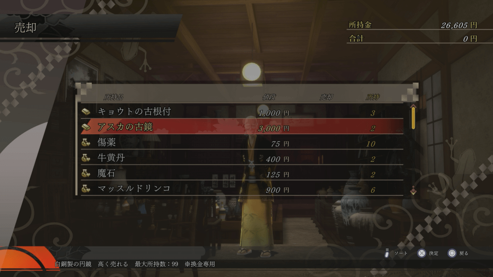 | 換金用アイテムを売却する |