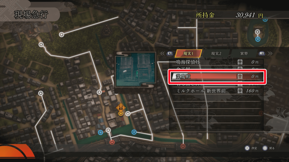 業魔殿は、一度でも訪れたことがあればファストトラベルで行けるようになる。道中で電車に乗る必要がある場合は、ファストトラベルでも同額のお金を消費するので、予めお金を用意しておこう。