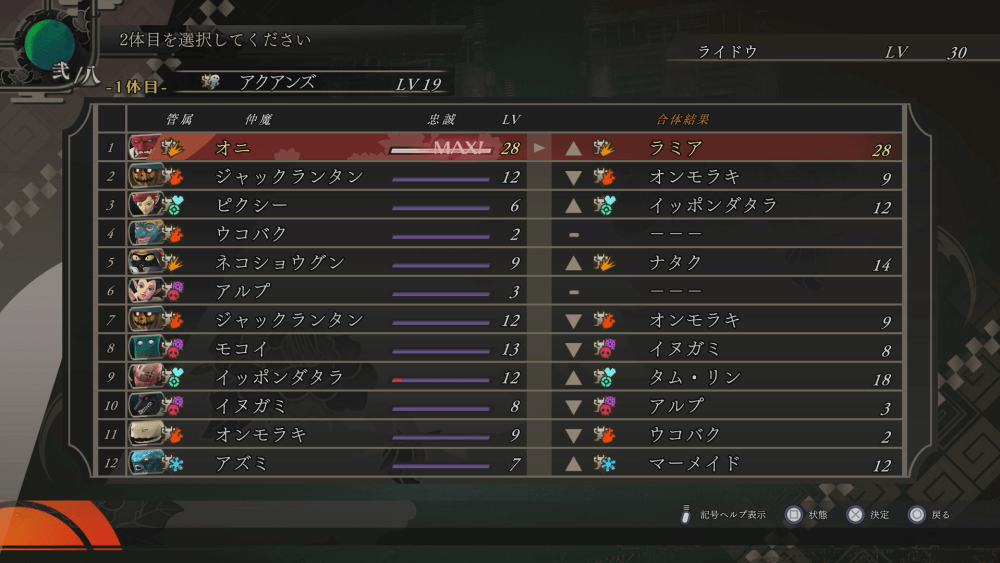 | 合体元のレベルで作れる悪魔が決まる |
