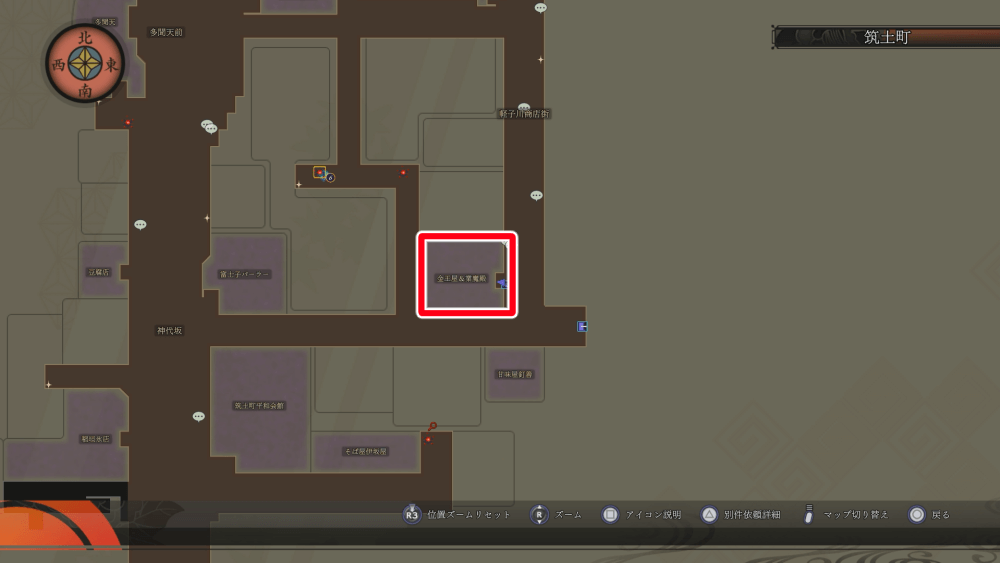 マップ 外観 悪魔合体をしたい場合は、まず業魔殿に行こう。業魔殿には、筑土街の金王屋から入れる。業魔殿が未開放の場合は、先にストーリーを進めて業魔殿を解放しよう。