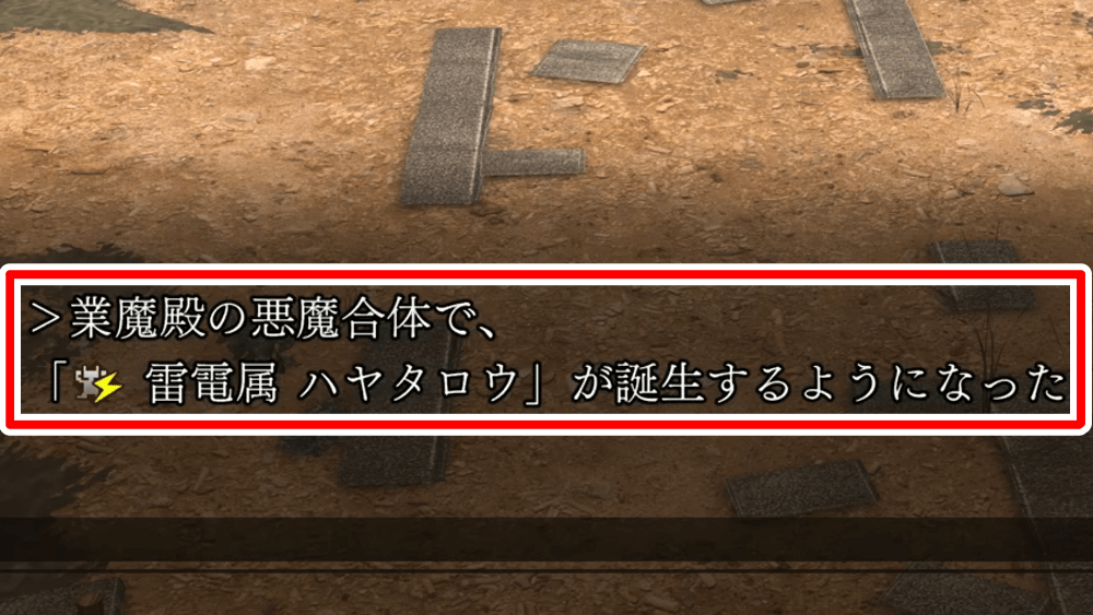 悪魔合体(業魔殿)は、ストーリー第1話の「異界筑土町」をクリアすると解放される。業魔殿でやれる悪魔合体は、強力な仲魔を造り出して戦略の幅を広げるというライドウの醍醐味の1つなので、いち早く異界筑土町をクリアしよう。