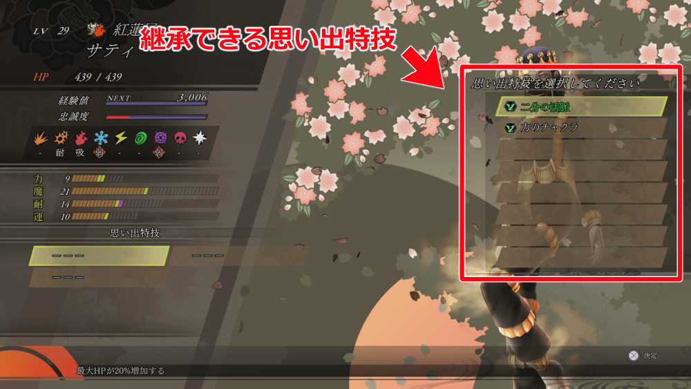 忠誠度MAXで思い出特技も継承できる