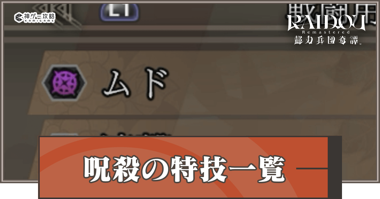 ライドウリマスターの「呪殺特技」を解説。ライドウの呪殺特技の効果を一覧で掲載しています。