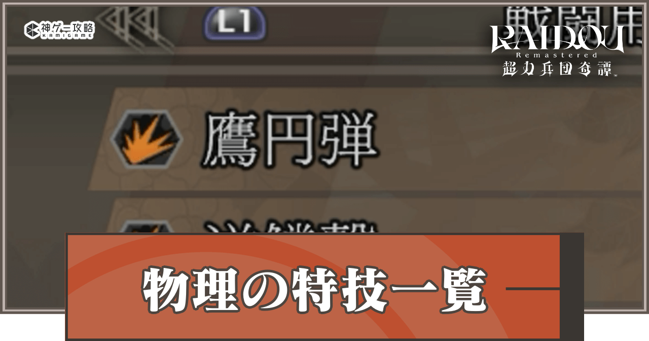 【ライドウリマスター】物理の特技一覧