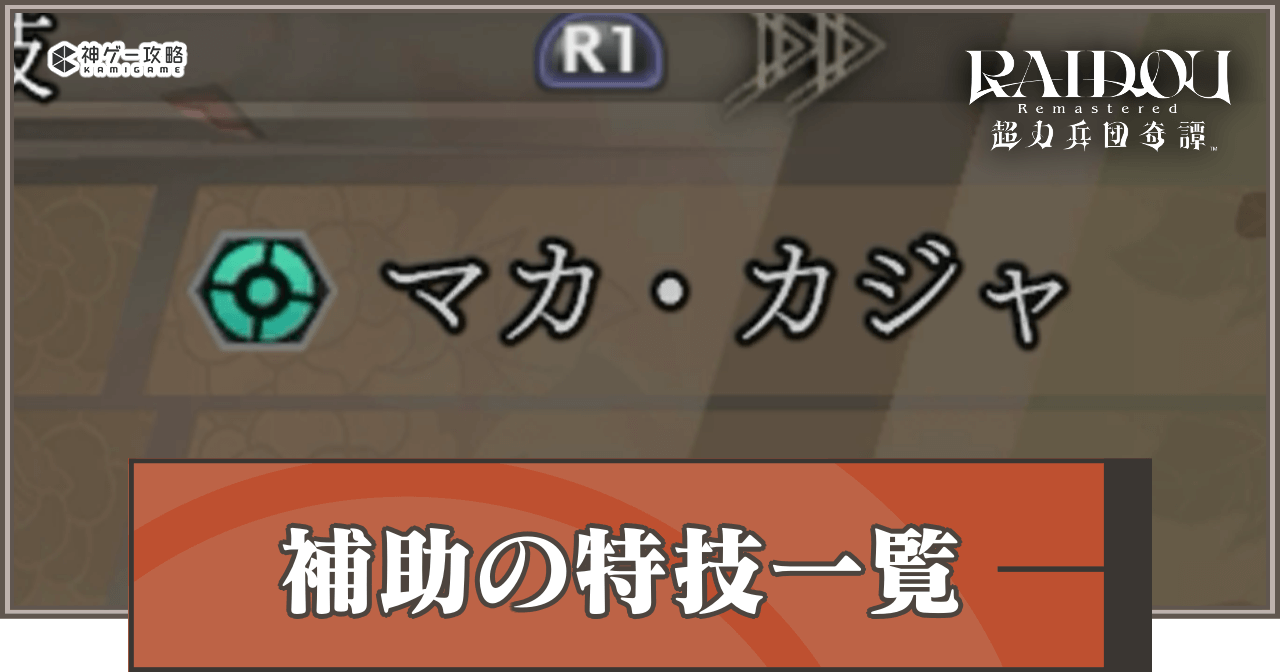 ライドウリマスターの「補助特技」を解説。ライドウの補助特技の効果を一覧で掲載しています。