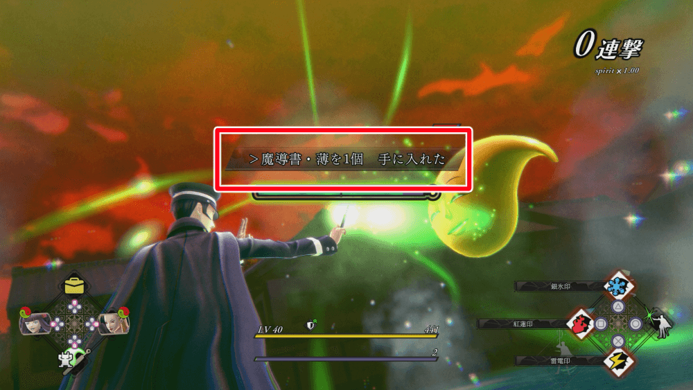 ザクロでは、稀に御霊が出現する場合がある。御霊に封魔術を使うと、経験値アイテムの魔導書を入手できるので必ず回収しよう。
