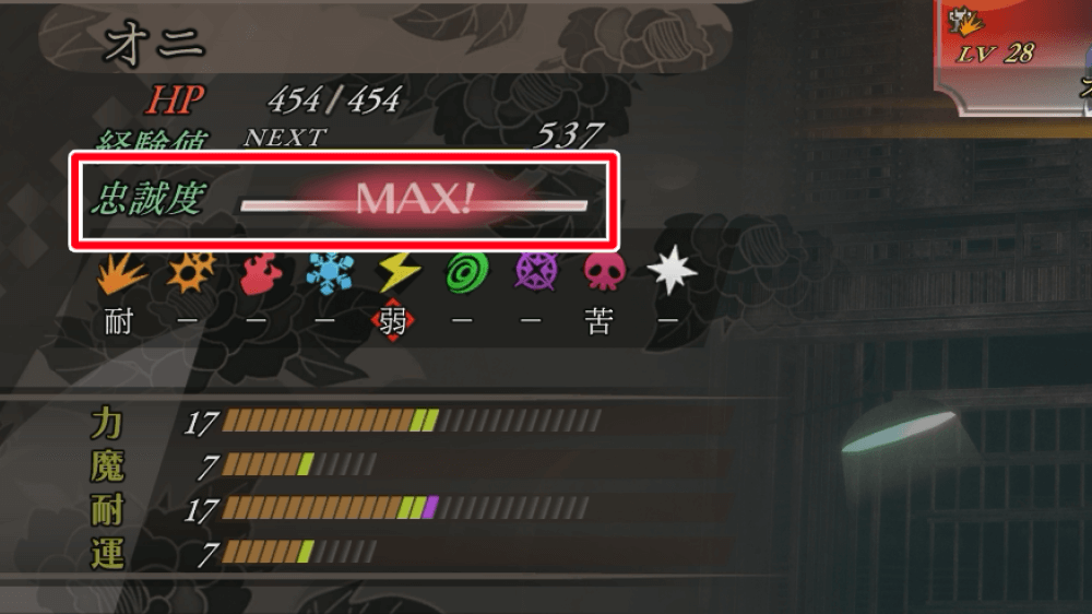 | 忠誠度がMAXになったら悪魔合体する |