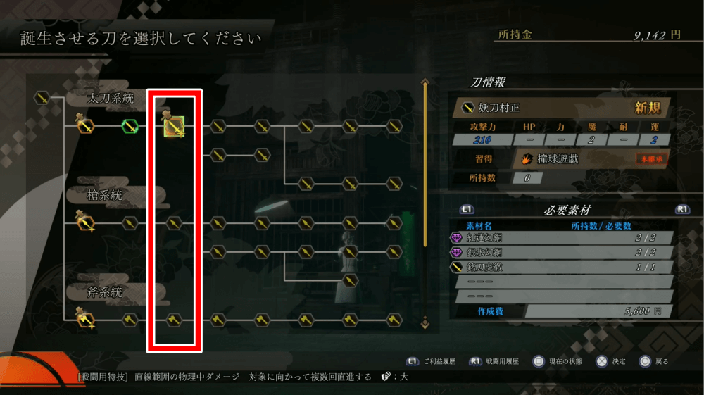 ・姫鶴一文字×1「妖刀村正」「小鳥丸」「仁王清綱」は、各武器種の3段階目の鍛造となる。武器種によって素材は異なるため、鍛造したい武器の素材を集めよう。