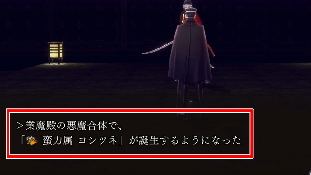 「ヨシツネ殿の腕試し」をクリアすると、ヨシツネの合体制限が解除される。悪魔合体でヨシツネを生み出せるようになるので、ヨシツネを編成したい人は「ヨシツネ殿の腕試し」をクリアしよう。