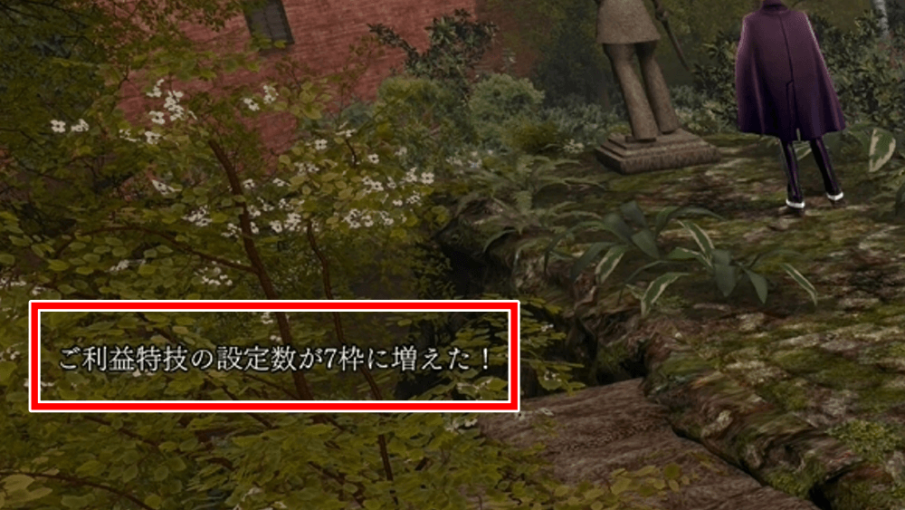「悪魔のデモ発生」をクリアすると、ご利益特技枠を1つ追加できる。ご利益特技は、セットするだけで効果を発揮する特技だ。