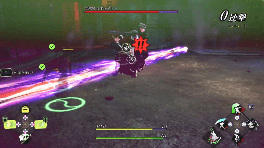 オボログルマの回転ビーム攻撃は、仲魔の隠し身をONにして、主人公はジャンプで避けよう。ビーム攻撃中は下手に動き回らず、その場ジャンプで避けるのが安全だ。