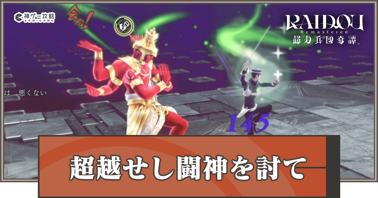 「超越せし闘神を討て」をクリアすると、アスラおうの合体制限が解除される。アスラおうを編成したい人は、「超越せし闘神を討て」をクリアして、業魔殿で悪魔合体を行おう。
