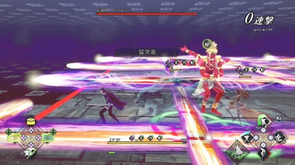 アスラおうが使ってくるビーム攻撃は、隠し身で仲魔を守りつつ、ライドウはジャンプで回避に専念しよう。ビーム攻撃中にアスラおうは、突進攻撃を繰り出してくるので、アスラおうの位置を常に把握しながらビームと突進攻撃を躱そう。
