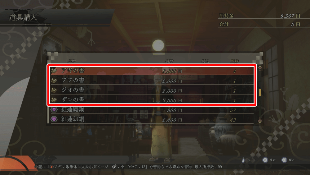 特技の書は、金王屋で購入できる。金王屋で購入できるのはアギ、ブフ、ジオ、ザンの4つのみなので、序盤に弱点を突きたい際に役立てよう。
