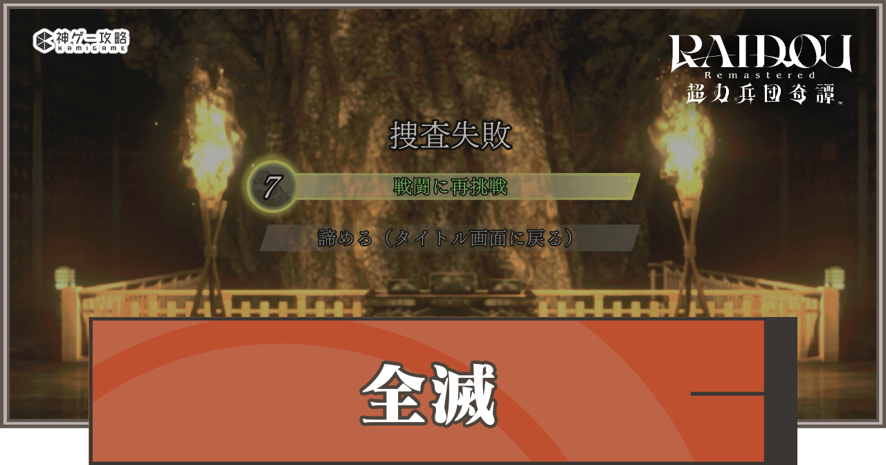 ライドウリマスターの「全滅」を解説。ライドウの全滅の仕様とデメリット、メリットや対策についても掲載しています。