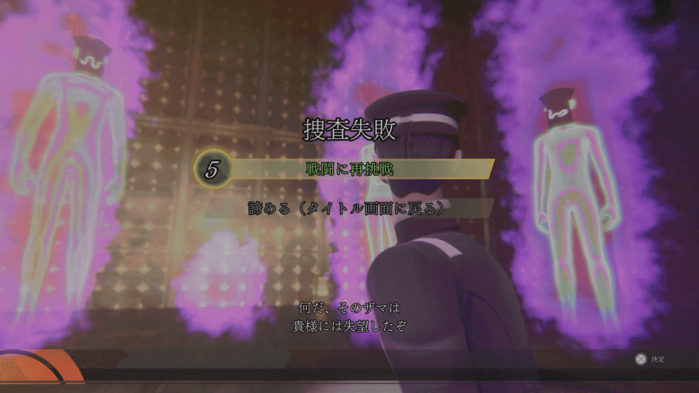 全滅した場合、10カウントの間に再挑戦を選ばないと強制的にタイトルに戻される。タイトルに戻った場合は前回のセーブポイントまで戻るので、進捗が巻き戻るのが嫌な場合は10カウント以内に再挑戦を選択しよう。