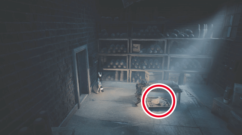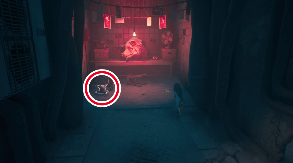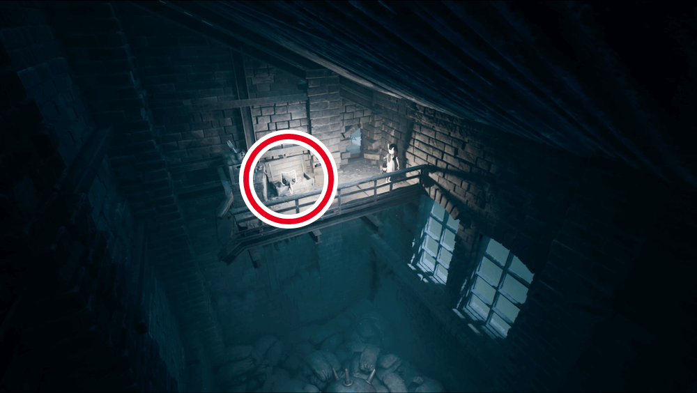 シャッターを開けて入った部屋の画面左の壁にある隙間から隠し部屋へ入ろう。穴が小さいため、しゃがみ歩きで入る必要がある。