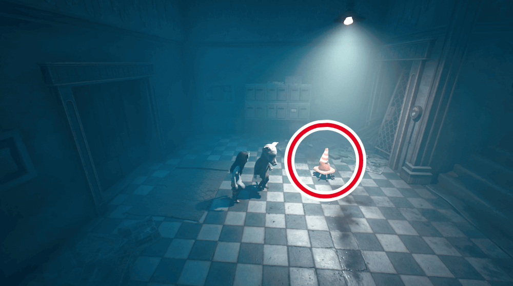 部屋の中にいる三角コーンを被ったクリッターを攻撃して倒そう。撃破後は三角コーンの仮面を入手できる。