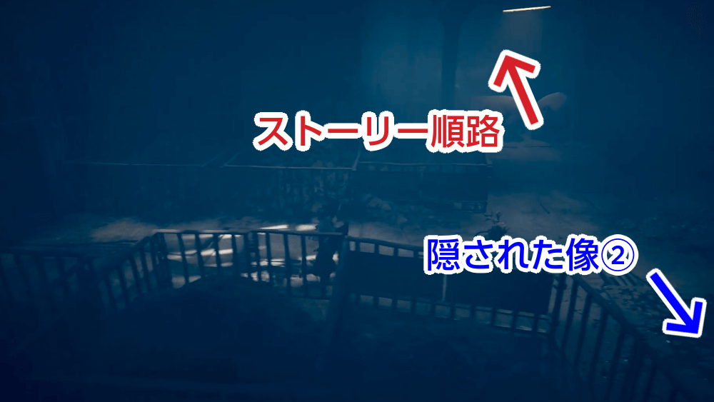 くじらを退かした後に船で移動する場面で、襲ってくる敵を撃退して橋をくぐった先の右の道に隠された像がある。橋をくぐった先にも敵が出てくるため、先に敵を倒しておくのがおすすめだ。