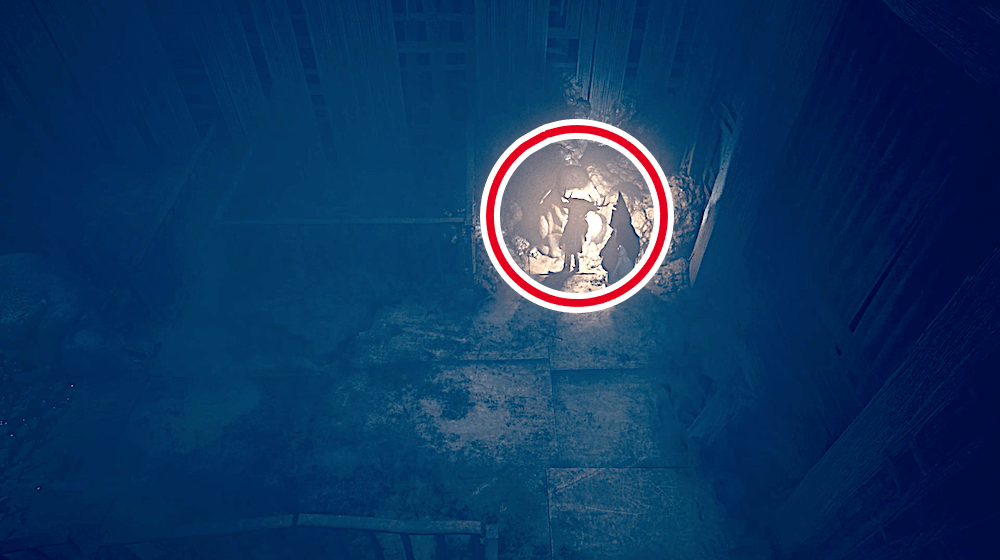 ハッチを降りた後、3体の敵を倒したら画面の奥側へ進もう。突き当りの右側に隙間があり、間を通り抜けられる。画面が暗く分かりづらいため、注意深く確認しよう。