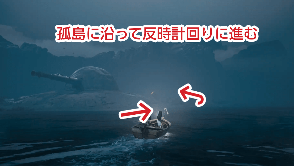 大砲がある孤島に沿って反時計回りに進む