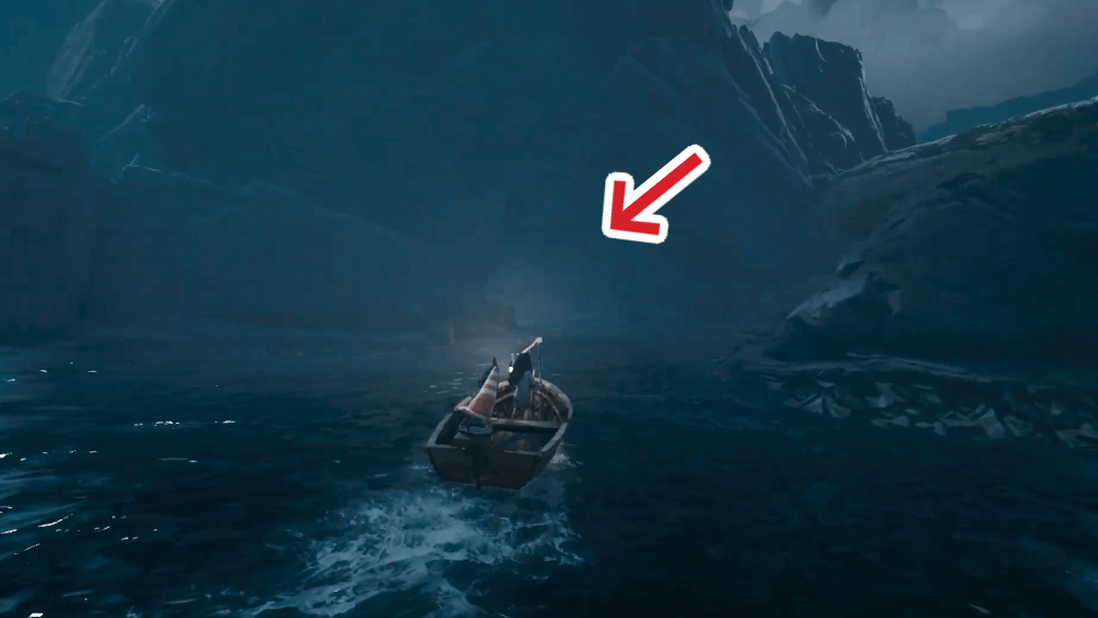 陸地沿いに船で進むと洞窟がある。洞窟内には敵が出現するため、銛で倒しながら奥に入ろう。