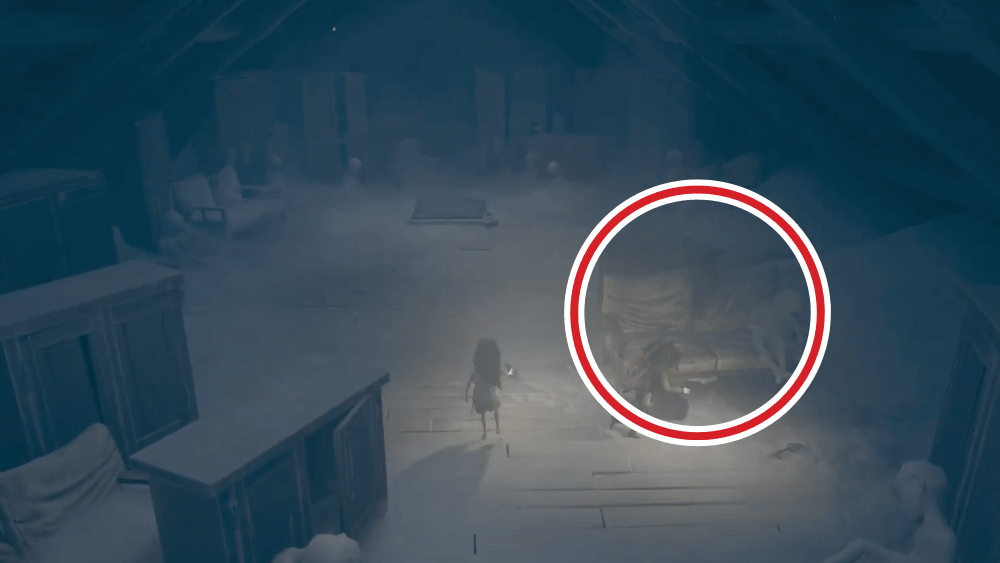 屋根裏部屋で右側の中央付近にある椅子をインタラクトして敵を起こそう。敵を倒すと先へ進むのに必要なカギを入手できる。