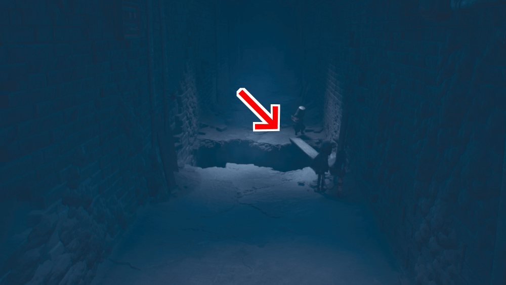 | 4 | 裂け目の前で友達が板を倒すまで待つ |