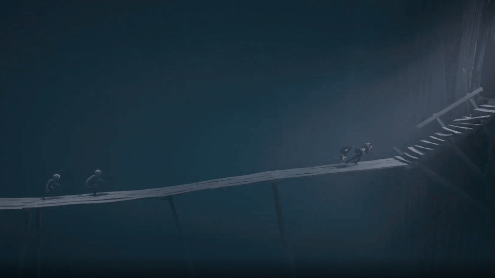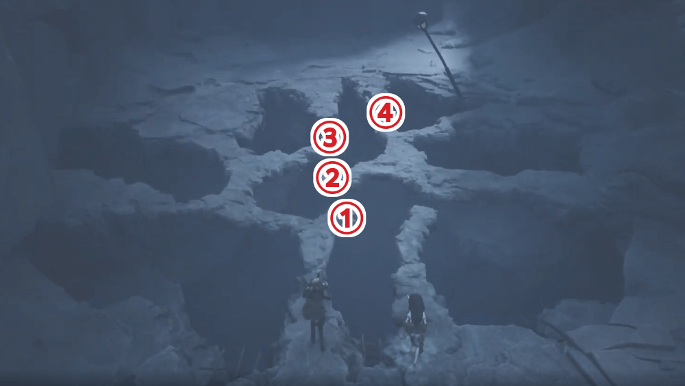 大きな裂け目の前まで来たら、友達が橋をかけてくるまで待とう。待てば確実に渡れる。