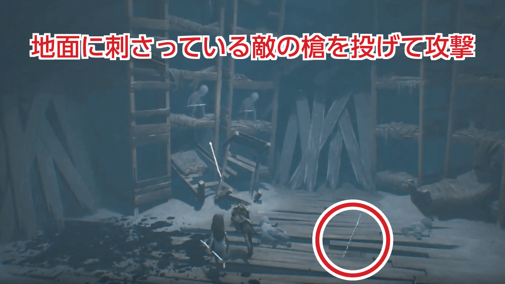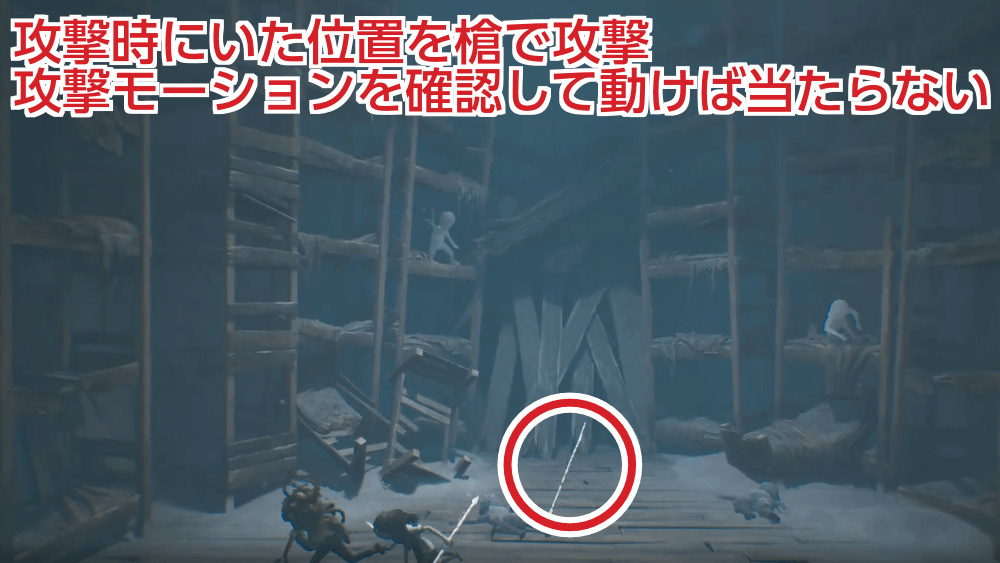 子グモは、攻撃時にいた位置目がけて槍を投げてくる。攻撃モーションを確認次第移動して避けよう。