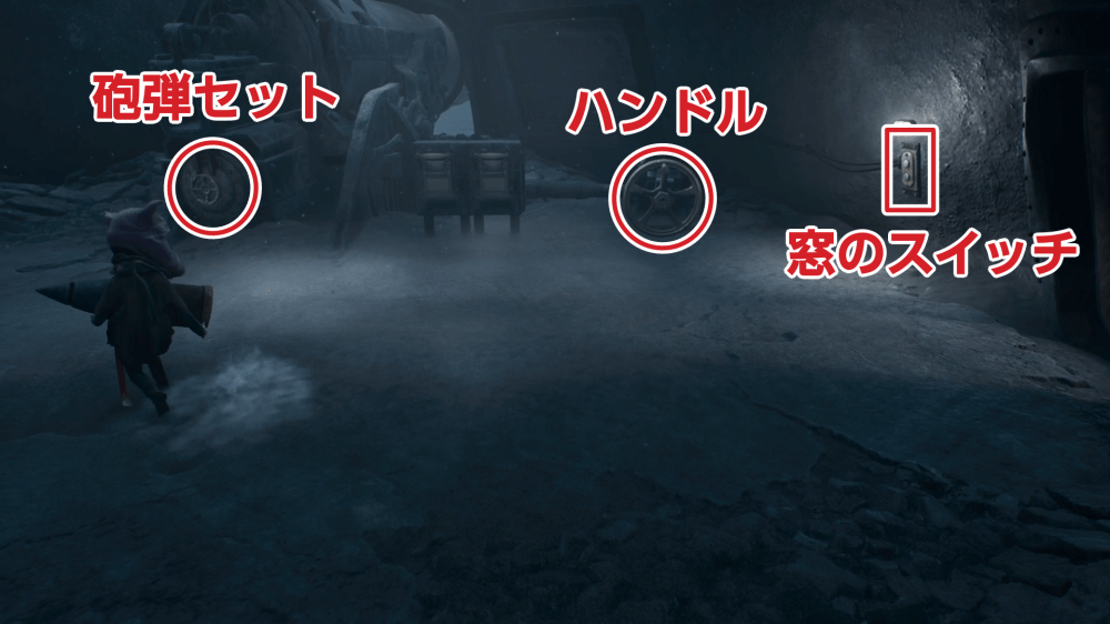 | 3 | 大砲に砲弾をセットして窓を開ける |