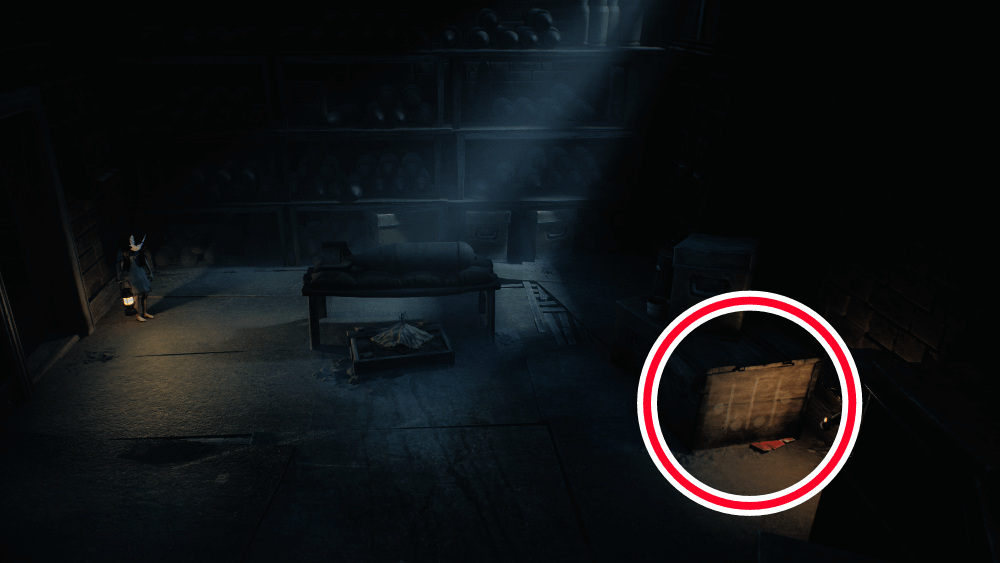 双眼鏡 木箱の模様 部屋に戻ったら右奥にある双眼鏡で外を覗き、左の木箱に記されている模様を確認する。模様の内容を覚えたら、部屋内のギミックを解こう。