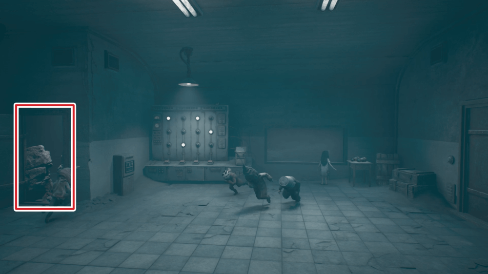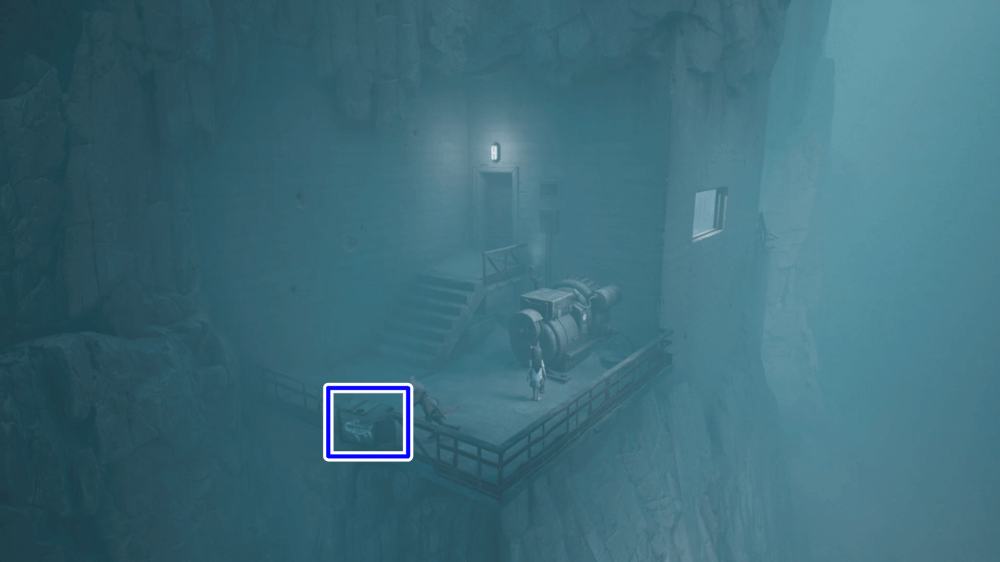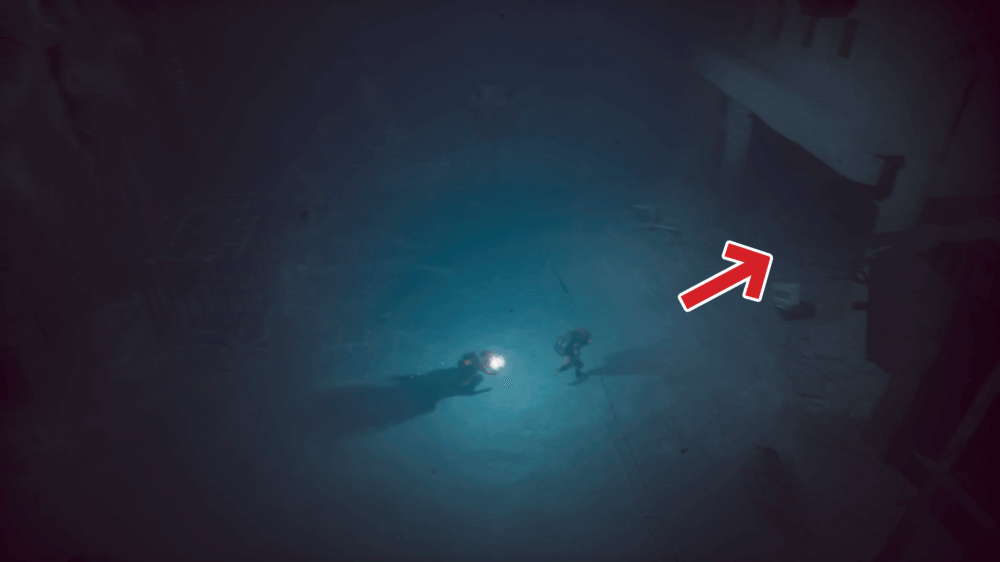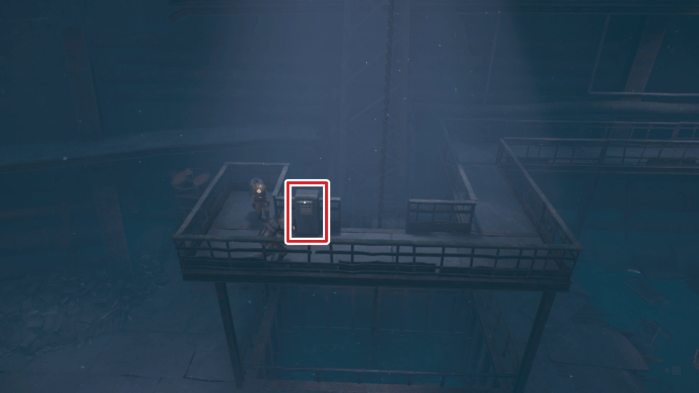 エレベーターを降り海底についたら、右側の建物内に入ろう。中に設置されている機雷に注意しつつ奥に進み、突き当りの扉をバールで開ける。