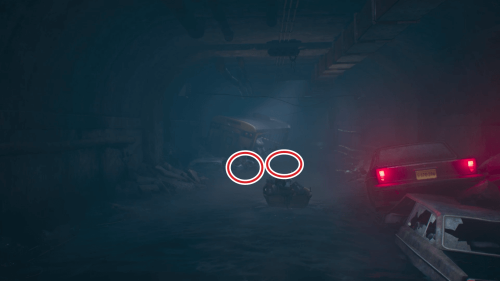 動けるようになったらトラックを降りて手前右の穴に入ろう。穴の先は1本道で、奥まで進み突き当りの部屋に入る。