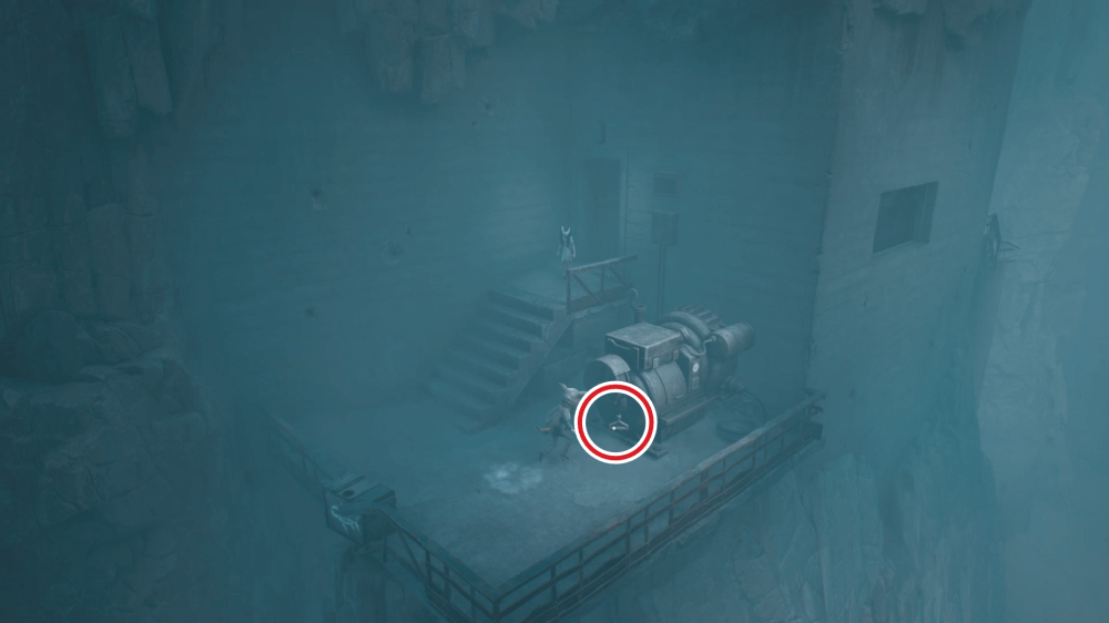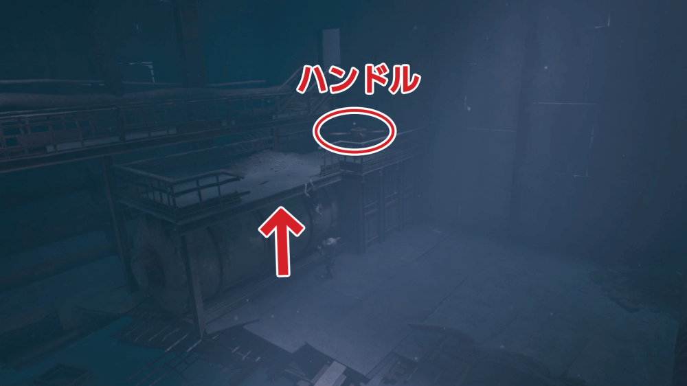 | 5 | 左の高台に登りハンドルを回して扉を開ける |