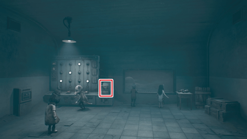 部屋に入ったら、右の扉から外に出よう。階段の下にある発電機を動かすと、部屋の明かりが付き次のギミックを行えるようになる。