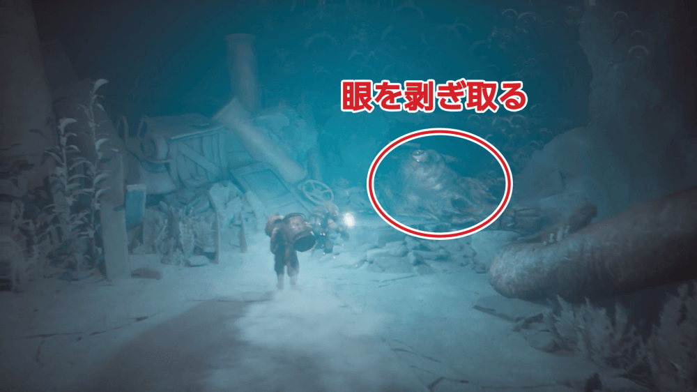 2一本道を奥に進み怪物の目を剥ぎ取る