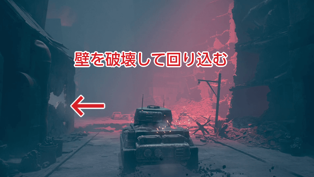 逃げ切ったと思うタイミングで、羊が地面から飛び出してきて戦車を捕まえてくる。砲塔を羊の頭に向け、3回大砲を当てれば地下に移動する。