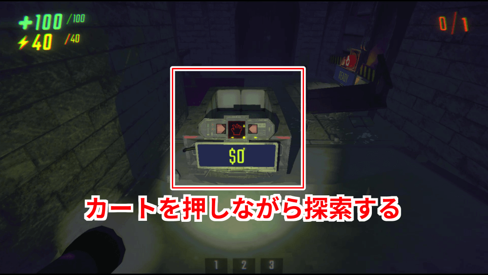 ゲームを開始したら、入口にあるカートを押しながらマップを探索しよう。ランダムで生成されるマップには換金できる貴重品が配置されており、見つけた貴重品はカートに入れて運び、納品場所まで持って行く。