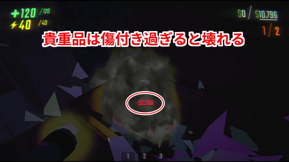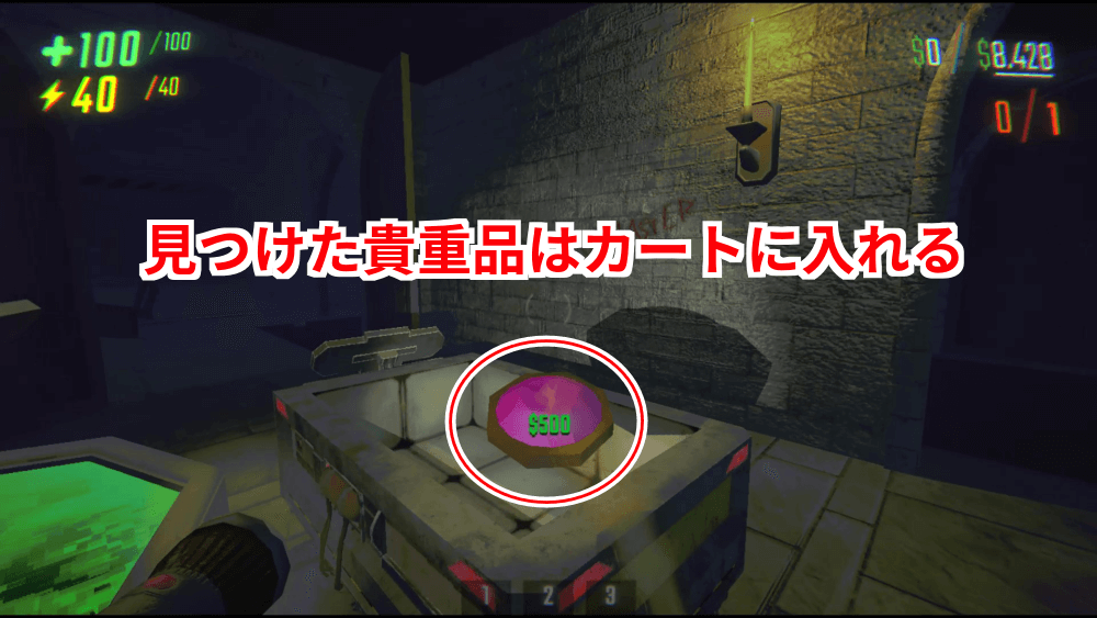 お金を効率的に稼ぐには、貴重品を傷付けずに納品するのが重要だ。貴重品は少し傷つくだけでも価値が下がり、物によっては一度何かにぶつけるだけで壊れる物もある。カートに入れておけば接触ダメージから守られるため、カートに入るものは必ずカートに入れて運ぼう。