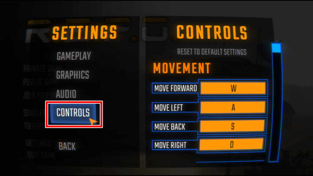 操作方法の設定は、メニューにある「SETTINGS」のCONTROLSから変更可能だ。ホーム画面やロビー、ゲーム中のいつでも変更できるため、遊んでみて違和感があればメニューを開いてすぐに調整できる。