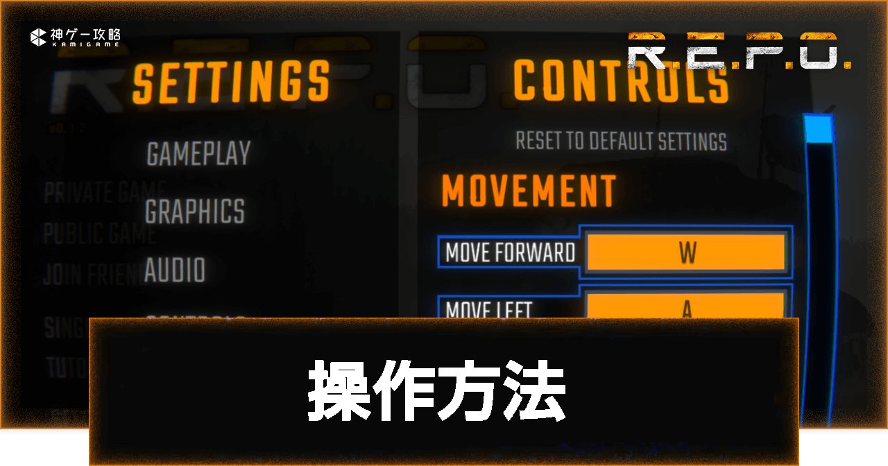 REPO(レポ/R.E.P.O.)の「操作方法」を解説。REPOのキーボード配置やコントローラーの設定方法、コントローラーが反応しない場合の対処法についても掲載しています。